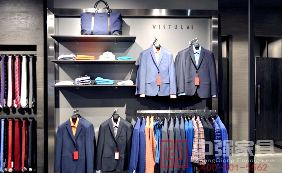中强为男装VISTULA展示柜衣架设计的时候,遵循着男装VISTULA的整体风格,将整个专卖店打造的符合自己的效果,男装VISTULA展示柜衣架是以黑色为主要色彩。 外观是店铺给人的整体感觉,有时会体现店铺的档次,也能体现店铺的个性。招牌的设计和安装,必须做到新颖、醒目、简明,既美观大方,又能引起顾客注意。